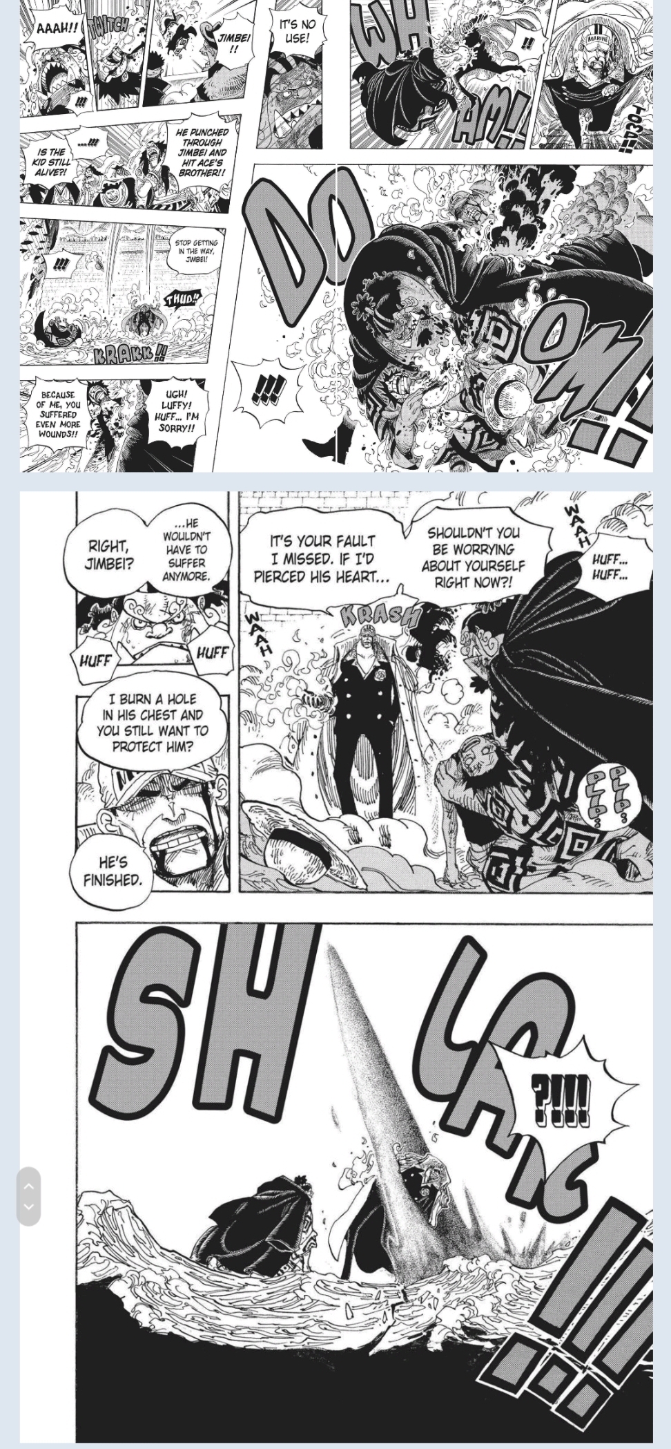 بمعنى انها هزمت أولتي + قاتلت ايس و هي مكبلة بالكايروسيكي, هنا يستحق ساساكي المدح لأنه جعلها تضطر للتحول بعدما حررها لوفي من الاصفاد.
