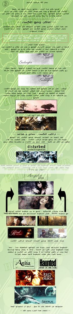 كيفكم يا اعضاء و عضوات منتدى مكسات , هذا اليوم سأكمل معكم المشوار بالجزء الثالث و الأخير من سلسلة دروس مباديء تصميم التواقيع و هذا الجزء يوضح كيفية تنسيق التكست في التوقيع ... درس مهم و مفيد و يعطيك فكرة أساسية عن كيفية إظهار التكست بشكل رائع و جميل ... طبعا وضعت الاقسام الثلاثة الاولى في هذا الموضوع ... و إن شاء الله اضع الثلاثة اجزاء المتبقية بعد يومين او ثلاثة حسب الظروف