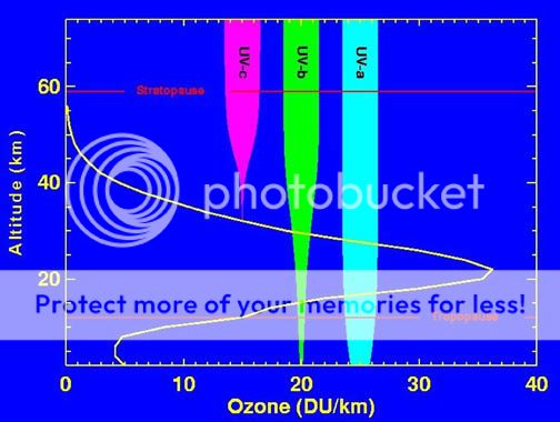 رسم بياني يوضح مستويات الأوزون عند ارتفاعات مختلفة و منع الأشعة فوق البنفسجية
